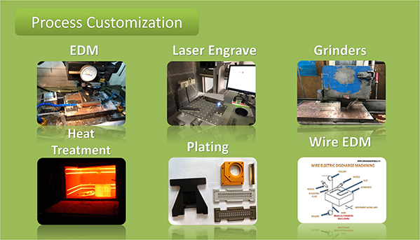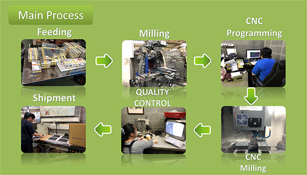 The main production process is on the right.Materials are built from your choice of graphite, aluminum, copper, steel, stainless, polycarbonate, nylon, or PEEK.